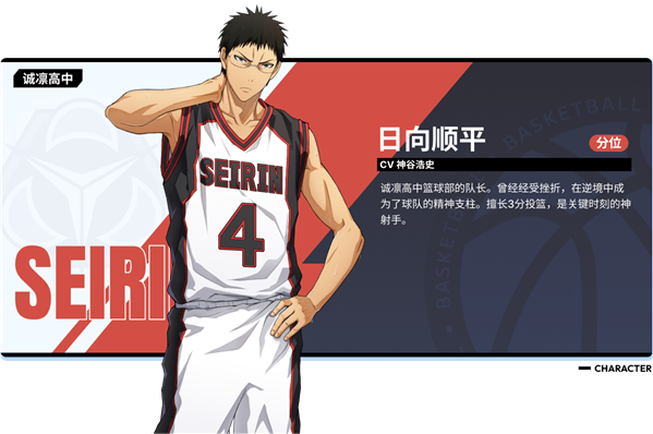 诚凛高中篮球部的队长。曾经经受挫折,在逆境中成为了球队的精神支柱。擅长3分投篮,是关键时刻的神射手。