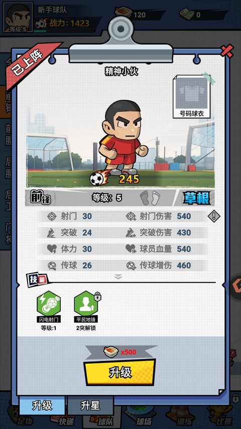 3、实时策略:这款游戏与传统放置卡牌游戏不同,游戏在射门和防守的关键时刻,游戏会提供决策机会,你可以选择射门方式或防守动作,这些指尖微操直接影响比赛结果。