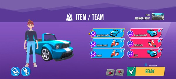 4、选定赛车后返回主界面,点击【Item Team】完成准备,然后再次点击【Start】进入比赛;