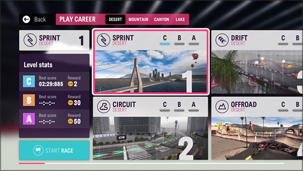 2、关卡设计丰富多样,风格独具特色,让你沉浸在不同的赛车场景中。