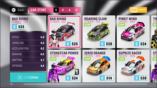 2、进入商店后,选择要解锁的赛车,可以看到解锁赛车所需的金币,点击购买即可解锁;