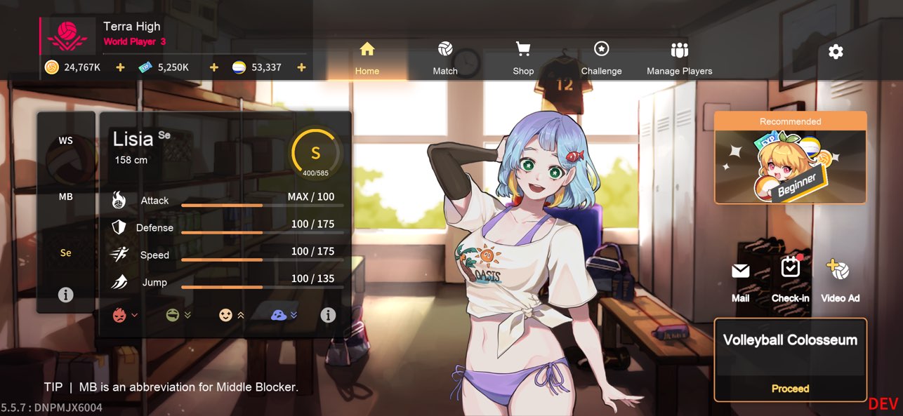 v6.3.353排球高手是一款非常受欢迎的体育竞技手游。该游戏以排球为题材,不论是新人玩家还是喜爱排球运动的玩家都能在游戏内体验到丰富的排球竞技乐趣。游戏采用2d横版场景,画面逼真,音效生动,人物细腻。进入游戏,玩家需要建立俱乐部,招募球员,根据不同球员的属性合理分配阵容,打造最厉害的队伍进行参赛。不论滑动、扣球,还是发球、以及接球等技巧操作,游戏都刻画得非常还原,带给玩家真实的游戏体验。