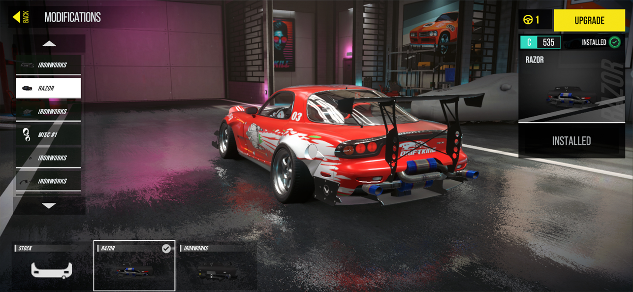 3、我们还可以对其进行改装,让我们获得最佳性能的赛车驾控体验,选择适合的配件进行改装;