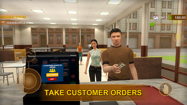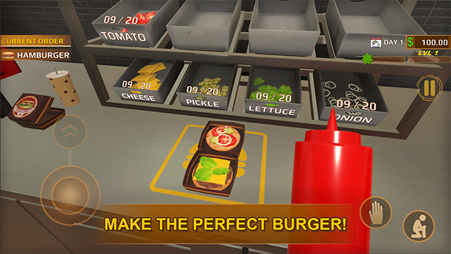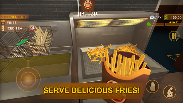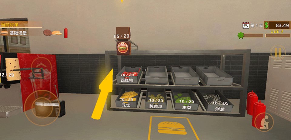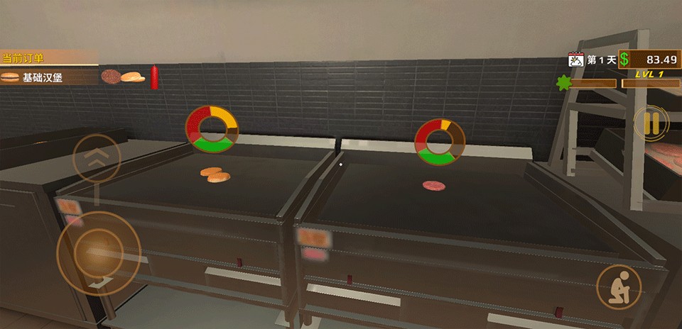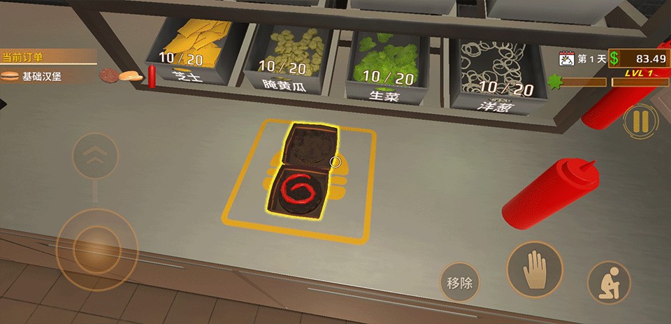 2、经营快餐店主题,制作汉堡炸薯条售卖挣钱。
