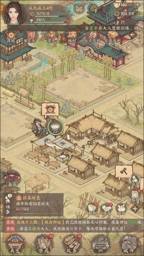 5、解锁了日常玩法之后,按照要求完成相应的县学传业、招贤等任务也可以获得升级经验奖励;