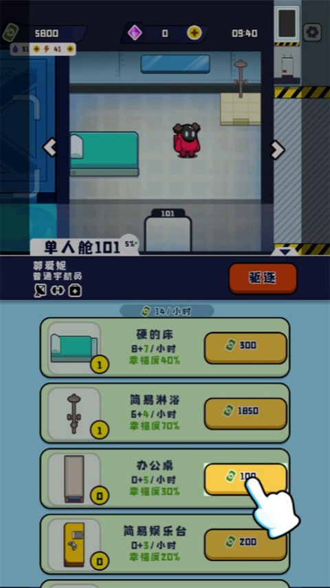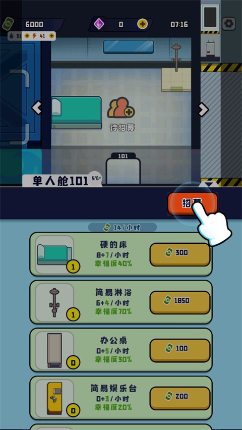 3、如图上所示,点击空间站的单人舱可以招募工作成员。