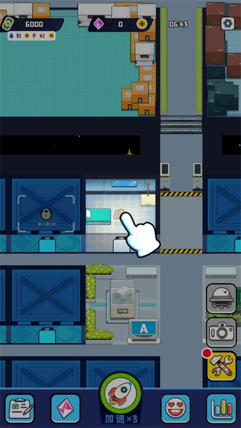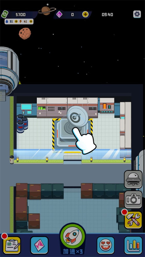 1、在漫画背景的开场引导下,玩家身处宇宙空间站,在这里你可以对专属的管理机器人下达指令。