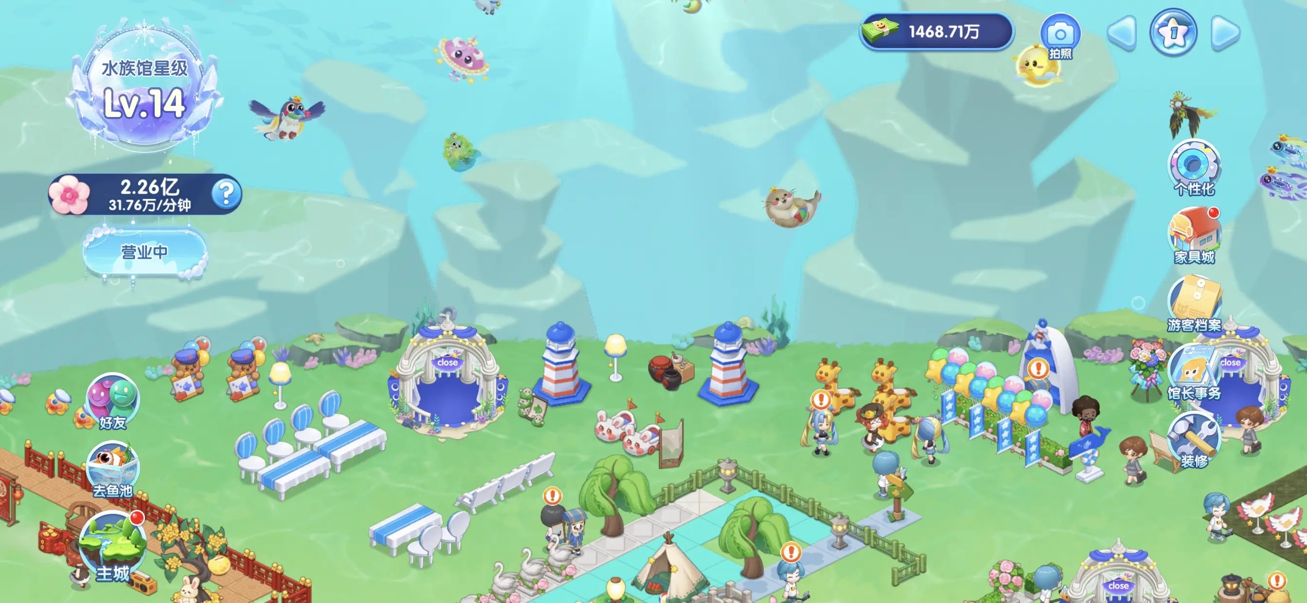 5、如此循环,当有了更多的鱼,属于你的水族馆就能重新开业,重现往日辉煌