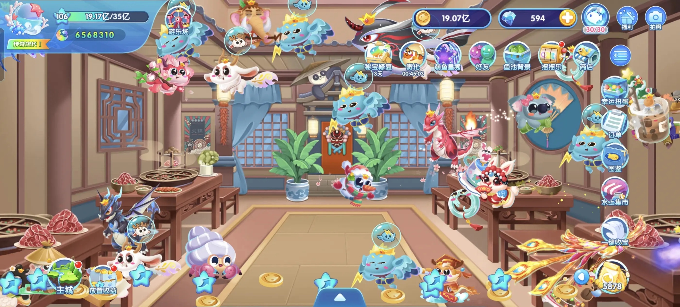 依旧是老方法,开始养下一种鱼的时候,前一种可以暂时收回仓库,这样可以节省鱼池容量来养其他鱼。如果想要更快获得,可以每种先获得一只,使用立即产宝来加快进程噢~