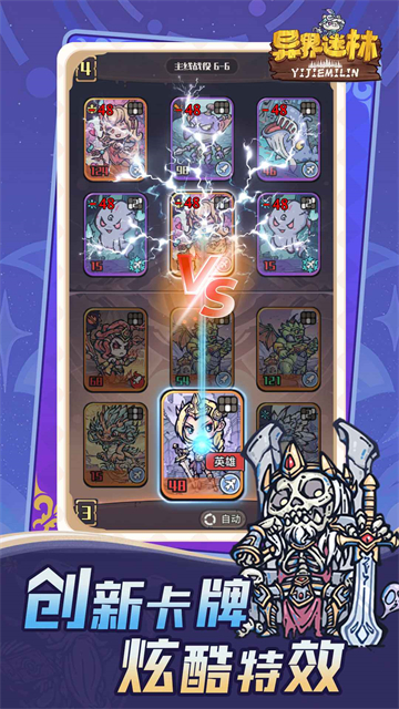 v1.0.6异界迷林是一款采用了特色卡通画质制作的策略对战卡牌类游戏。在“异界迷林”这款游戏中玩家将化身成为一位新手召唤师,玩家需要收集各种异界英雄角色卡牌。每个卡牌角色都有着自己的站位和不同的炫酷技能,玩家需要根据自己的战斗策略随意调整出战卡牌的阵容在这奇幻的世界中与各种敌人战斗。