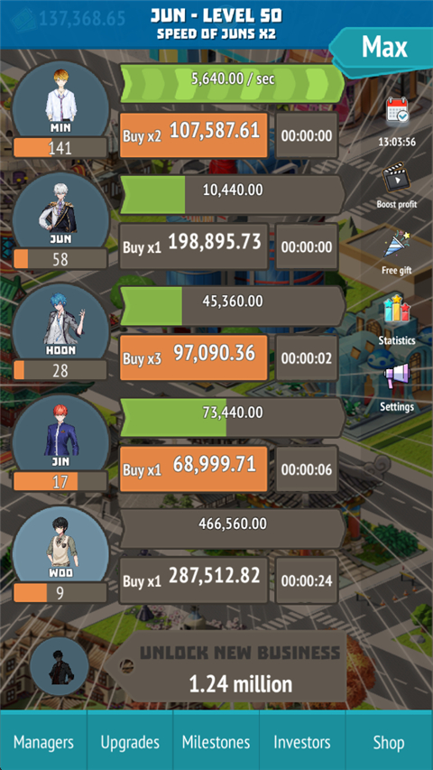 1、偶像经理人手游前期玩家需要点击偶像进行演出获得钞票,下图这里就是有经理人会自动安排演出获得钞票。