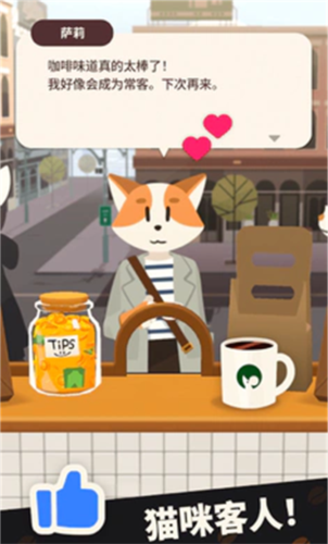 3、每一位猫咪顾客都拥有独特的个性和喜好,通过暖心咖啡和美味甜点,与他们建立深厚的友谊,解锁更多趣味故事。
