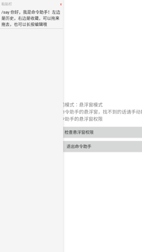 2、开启权限后,就可以在屏幕外看到命令助手的的图标。