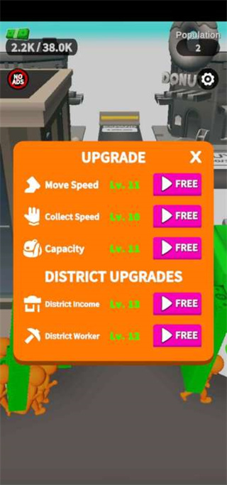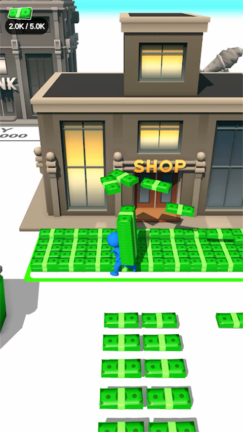 模拟大富翁是一款模拟进步建造类游戏,游戏的玩法非常简单,玩家需要做的就是不断的拾取周围的钞票,随后便是利用这些钞票进行房屋建造。游戏拥有高度自由的玩法,玩家可以自由的规划每栋建筑建造的位置,让自己的城市变得更加繁华的同时也可以更加的整洁。而且玩家在中期的时候还可以招募工人帮助自己收集钞票,玩家可以将心思更多的放在建筑规划方面。