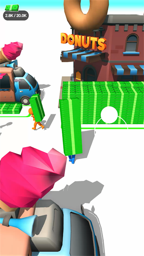 1、采用立体场景设计,玩家可在街道收集现金增强经济基础;