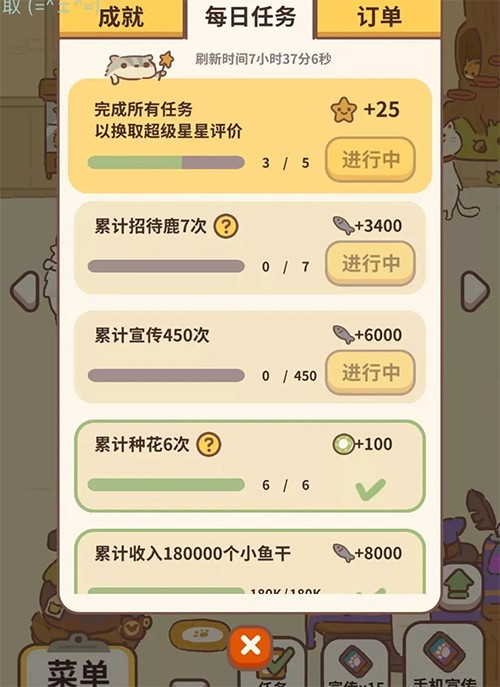 6、收集更多奖励去不断升级的你餐厅,让可以去同时容纳更多的小动物们。