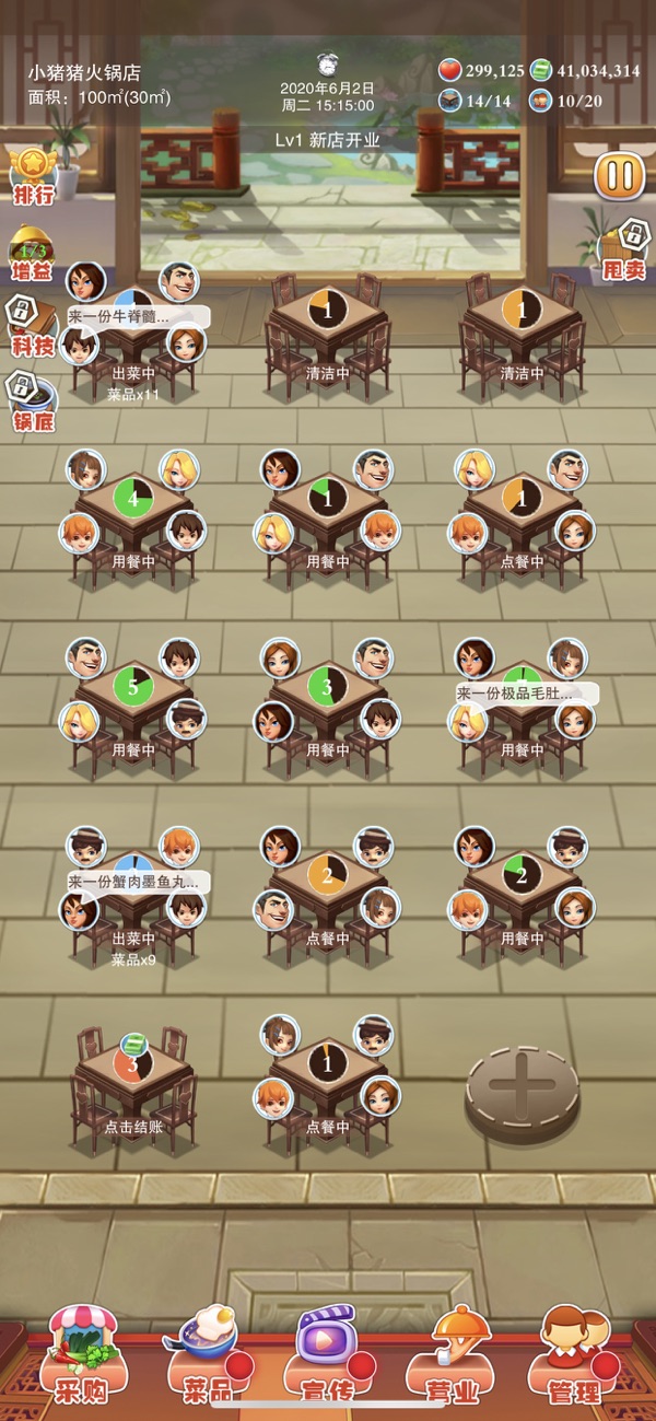 不必特别关注人气部分,零星的排队流失和备货不足不用特别在意,别扣扣搜搜了,现实里的人气也是在波动中缓慢上升啊,但是解锁全部菜品是需要71300人气的,此时酱料和打烊要合理配合一下。后期的升级是需要解锁全部锅底,锅底需要消耗人气,这时候需要关注一下了,因为人气流失比人气获得容易。而人气和宣传效果有关,人气太低,宣传效果不好,获得客流少,人气增长又慢,所以我基本上是攒着人气,要升级的时候一次用在锅底上。