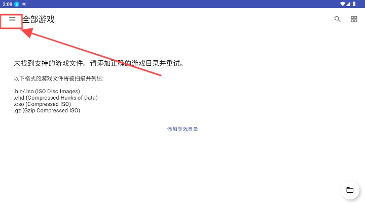 点击主界面的“添加游戏目录”,将自己要玩的游戏rom添加进来,之后就会在列表出现游戏了