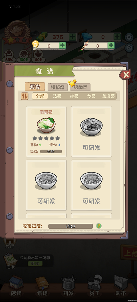 4、在这里可以看到有诸多可供玩家研发的食谱。