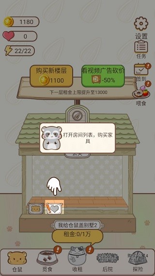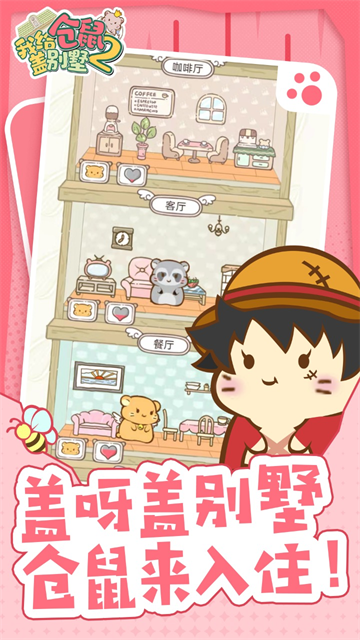 我给仓鼠盖别墅2是一款采用了非常Q萌可爱的卡通画质制作的放置收集养成类游戏。”我给仓鼠盖别墅2“这款游戏是以可爱Q萌的小仓鼠展开,玩家将在这款游戏中化身成为超级建筑大师。为这些可爱的小仓鼠盖好看的别墅房子并放置各种家具,同时你还肩负铲屎官任务照顾他们生活陪伴他们玩耍。