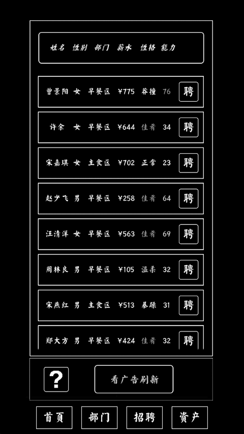 5、招聘一些厨师,每个员工都有不同的特性,你需要合理招聘
