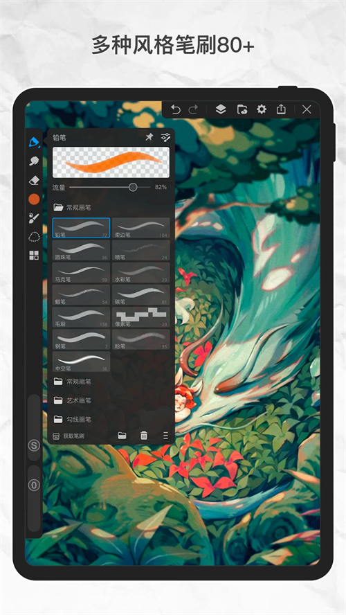 画世界Pro官方正版汇集了各式各样丰富的绘画素材以及功能,可模拟真实的笔刷绘画效果,也可以自定义各种笔刷,软件具备高级图层功能,也满足了专业绘画的需求。