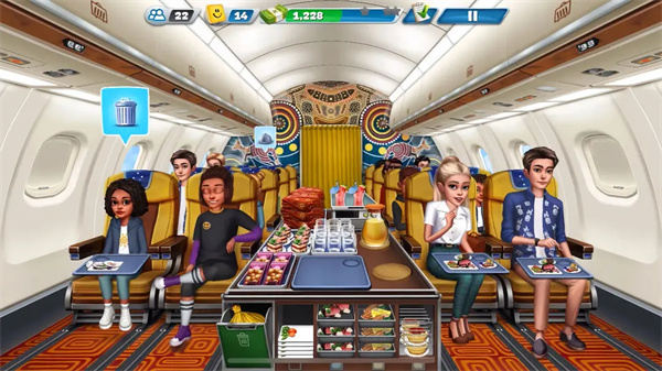 4、独特的游戏背景:游戏以航空餐经营为主题,玩家需要在飞机上扮演空姐或厨师的角色,及时给顾客配餐。这种独特的游戏背景让玩家在享受烹饪乐趣的同时,还能体验到空姐或厨师的日常工作和生活。