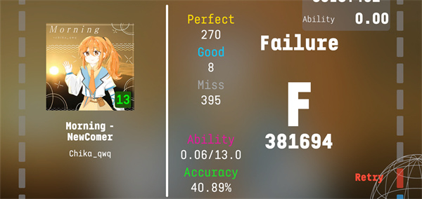 3、每个谱面完成后都有评分。